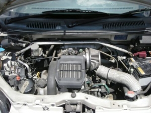 ステンメッシュのエアクリーナーがアクセルを踏むたびに、凄い音で空気を吸います