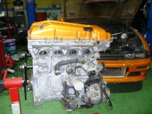 NAエンジンが好きな社長が”車はパワーじゃない”と14Q’sのノーマルエンジンにヘッドをオレンジに塗っただけです。現在の仕様で岡山国際サーキットを1分52秒フラットなのでこれからです。